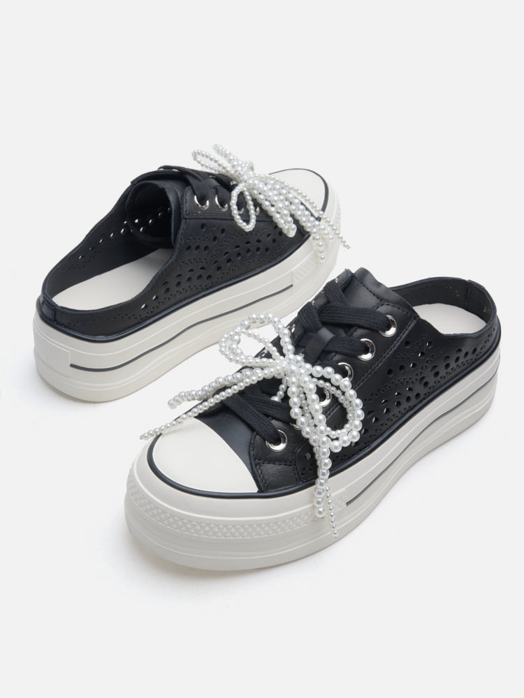 Wilhelmina Slip-on Pearl Bow Sneakers