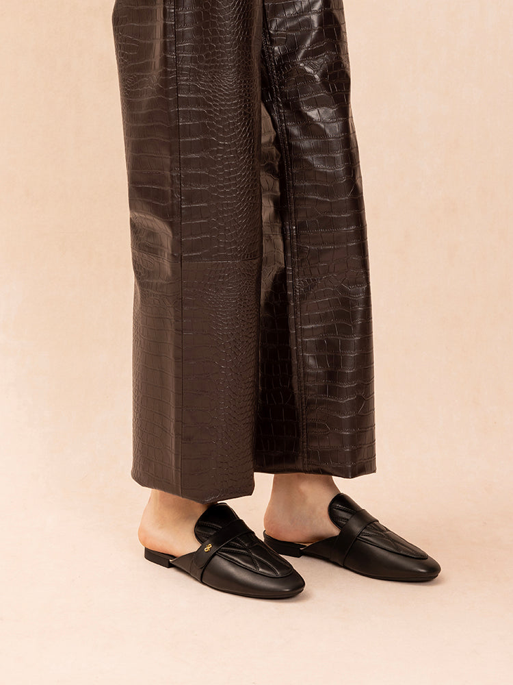 [SALE]Sara Gold Accent Quilted Mules