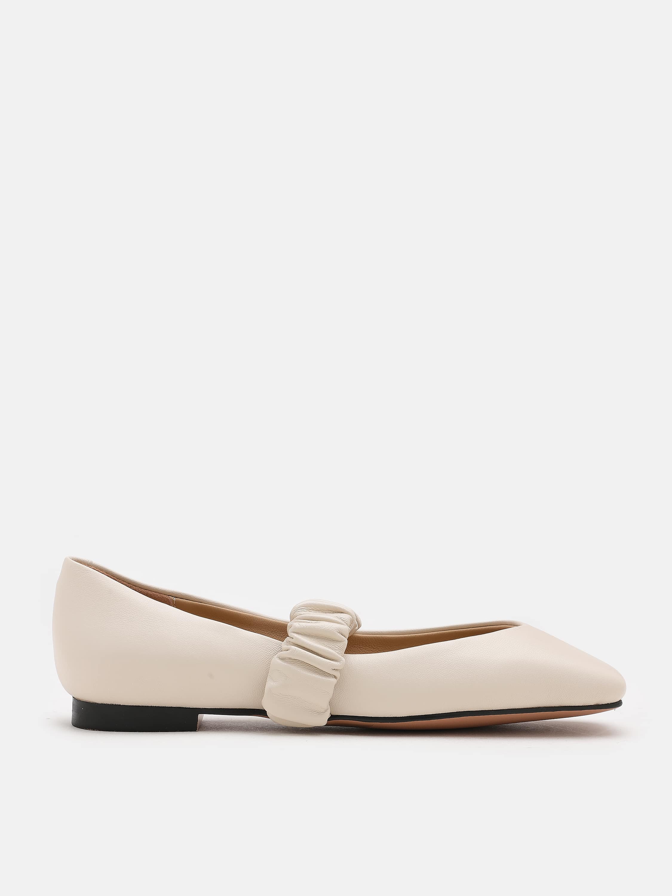 [SALE]Zion Ruched Leather Band Ballet Flats