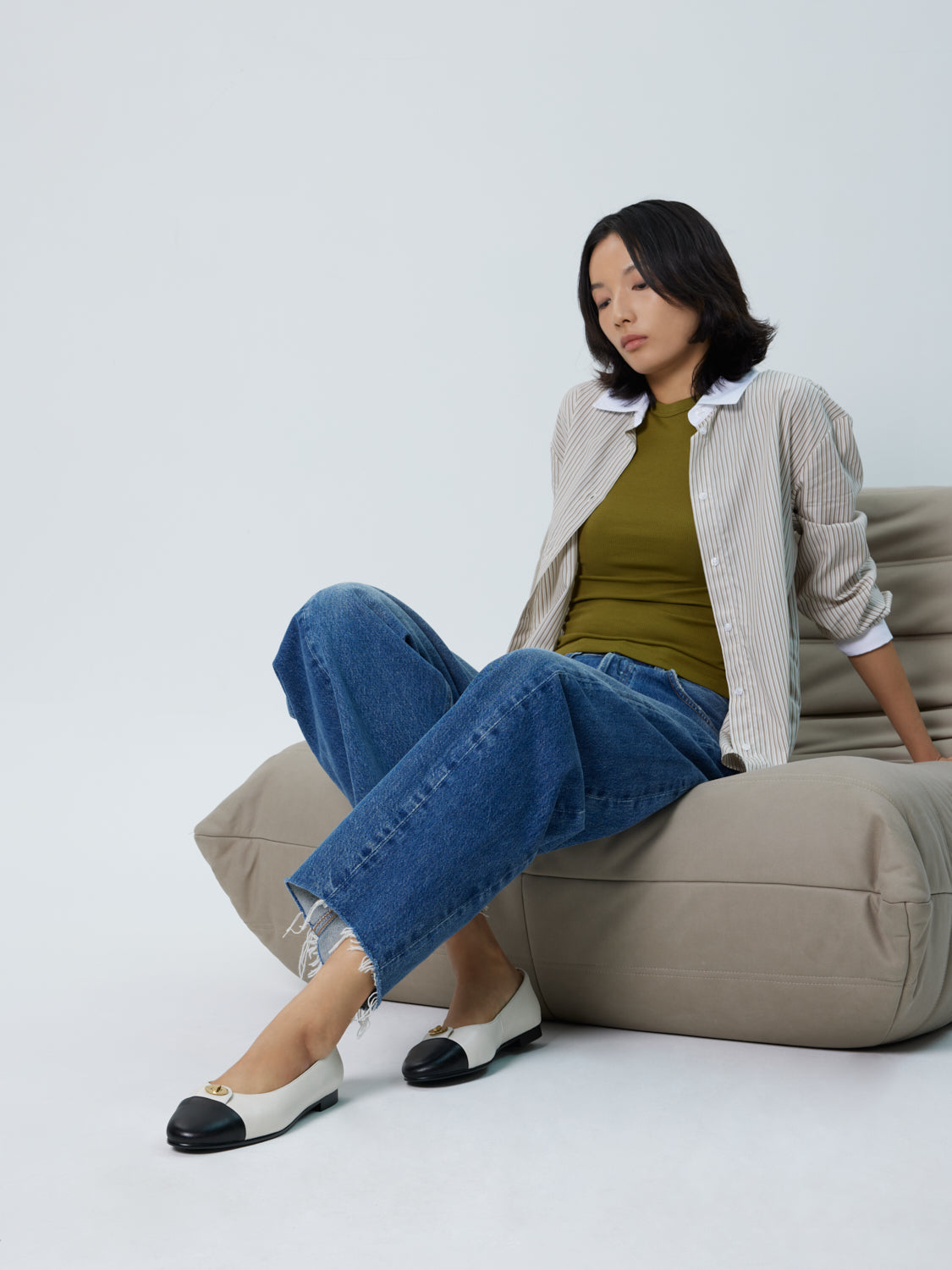 PRODUCT DESCRIPTION Made from soft lambskin with a sturdy rubber outsole and a contrasting cap toe, these flats are finished with gold hardware at the front. A padded back cushion adds extra comfort for all-day wear. DETAILS Material: Lambskin Lining: Lambskin Insole: Lambskin SIZING GUIDE WOMEN SHOE SIZE CONVERSION CHART ...