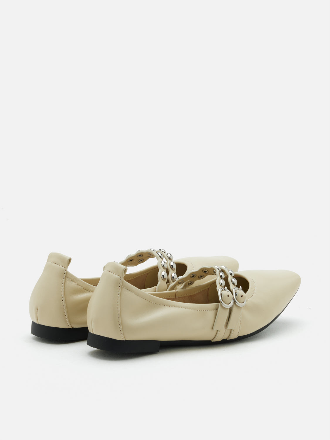 PRODUCT DESCRIPTION Crafted from supple lambskin, Sydney features a distinctive square toe and a unique design focal point: oval-studs meticulously placed across the double straps, offering a bold yet refined statement. With a softly squared toe and a cushioned lambskin insole, these flats effortlessly blend comfort and edgy sophistication in...
