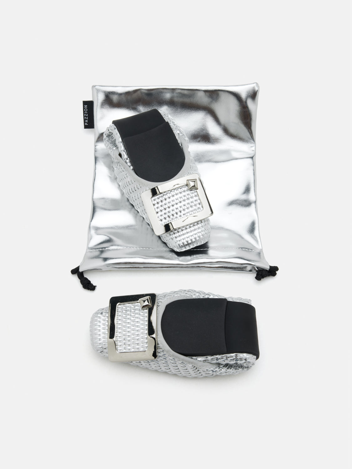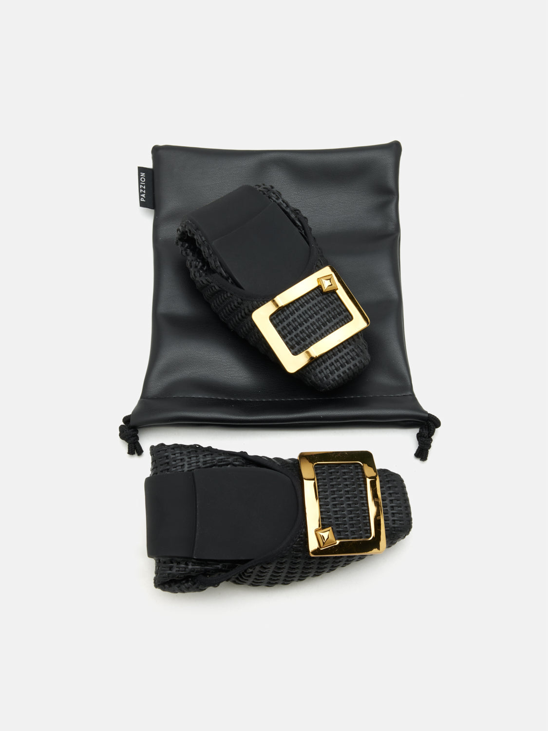 • Wren offers a masterful blend of perennial chic and textural intrigue with its woven texture and striking metallic square-shaped decorative buckle. Crafted from microfiber with a lambskin lining and a flexible rubber outsole, these flats provide an effortlessly graceful fit. A versatile choice for those who appreciate quiet luxury with an artistic touch.