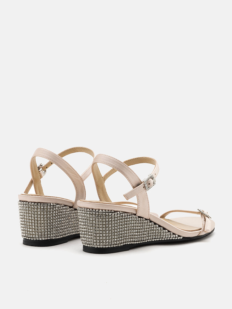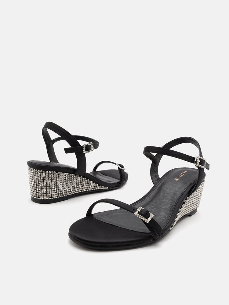 Step confidently into elegance with Juniper. These sophisticated wedges redefine glamour with crystal-embellished sides that sparkle at every stride. The dazzling crystals adorn the sides, creating an effortlessly glamorous look for your weekend or vacation capsule. Featuring a 5.5cm height, Juniper boasts slender adjustable crystal buckle ankle and toe straps, offering both style and comfort. Perfect for a special night out, pair Juniper with a mini crystal pouch or clutch for a complete and stunning head-turning look.