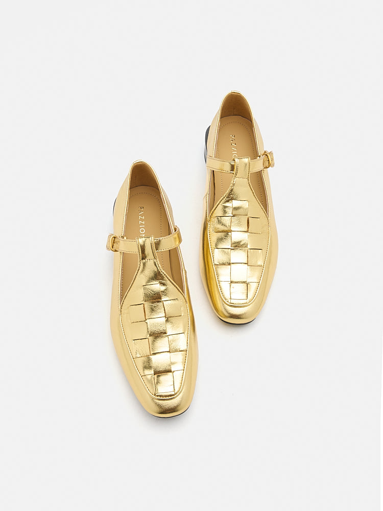 Feodora features a unique intricate weaved top exterior and interesting T-bar buckle design, blending classic elegance with contemporary style. The weaving detail not only adds a touch of artisanal charm but also enhances breathability and comfort. Perfect for both casual and semi-formal occasions, they promise to elevate your look with understated sophistication and effortless flair.