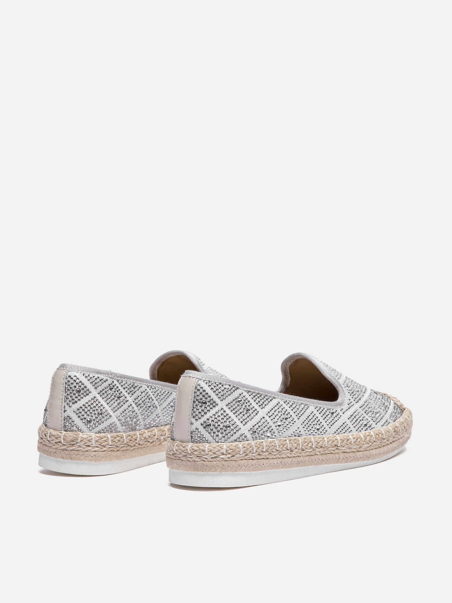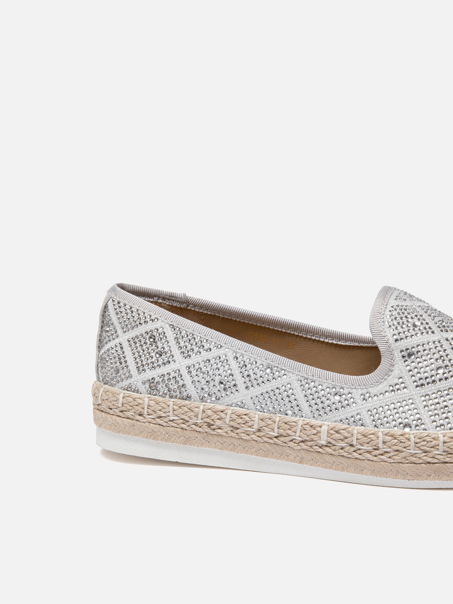 PRODUCT DESCRIPTION These espadrilles have a detailed embroidered microfiber upper decorated with sparkling crystals. The breathable insole with arch support and a padded back keeps your feet comfortable, while the soft lambskin lining feels gentle on the skin. The rubber outsole ensures steady traction. DETAILS Material: Microfiber/ Crystals Lining: Lambskin...