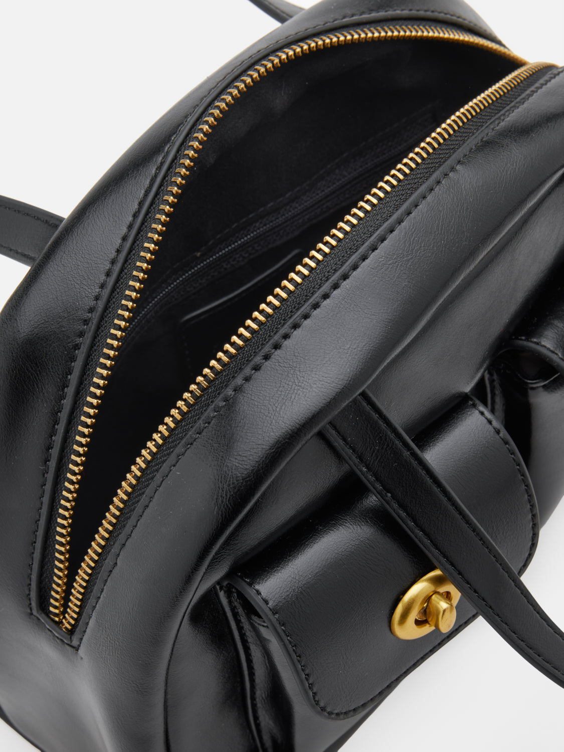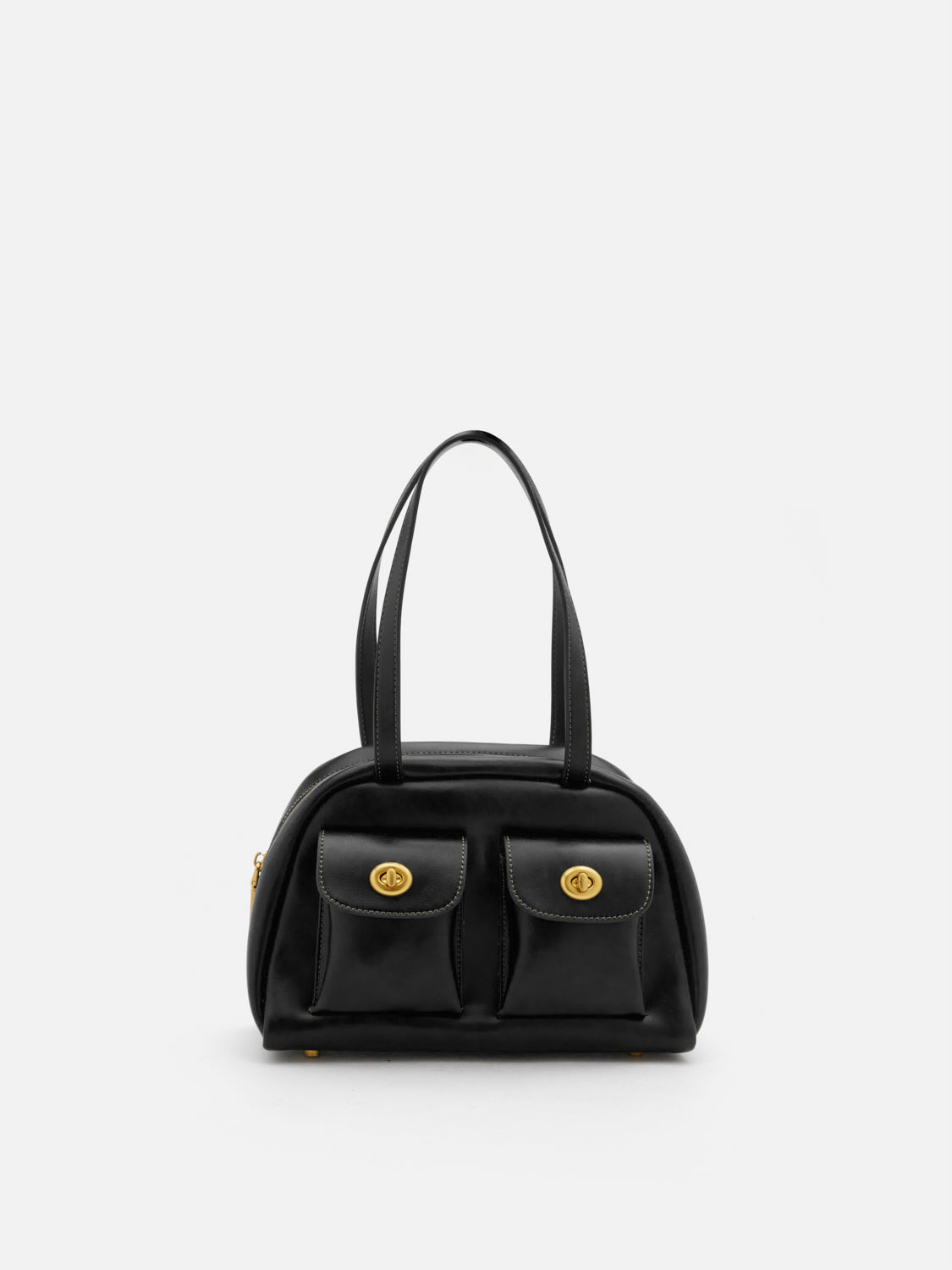 The Danica Leather Bowling Bag has a timeless silhouette that blends classic structure with effortless sophistication. Crafted from smooth genuine leather, it features dual front flap pockets with gold twist-lock details — adding a touch of polish and practicality in one.