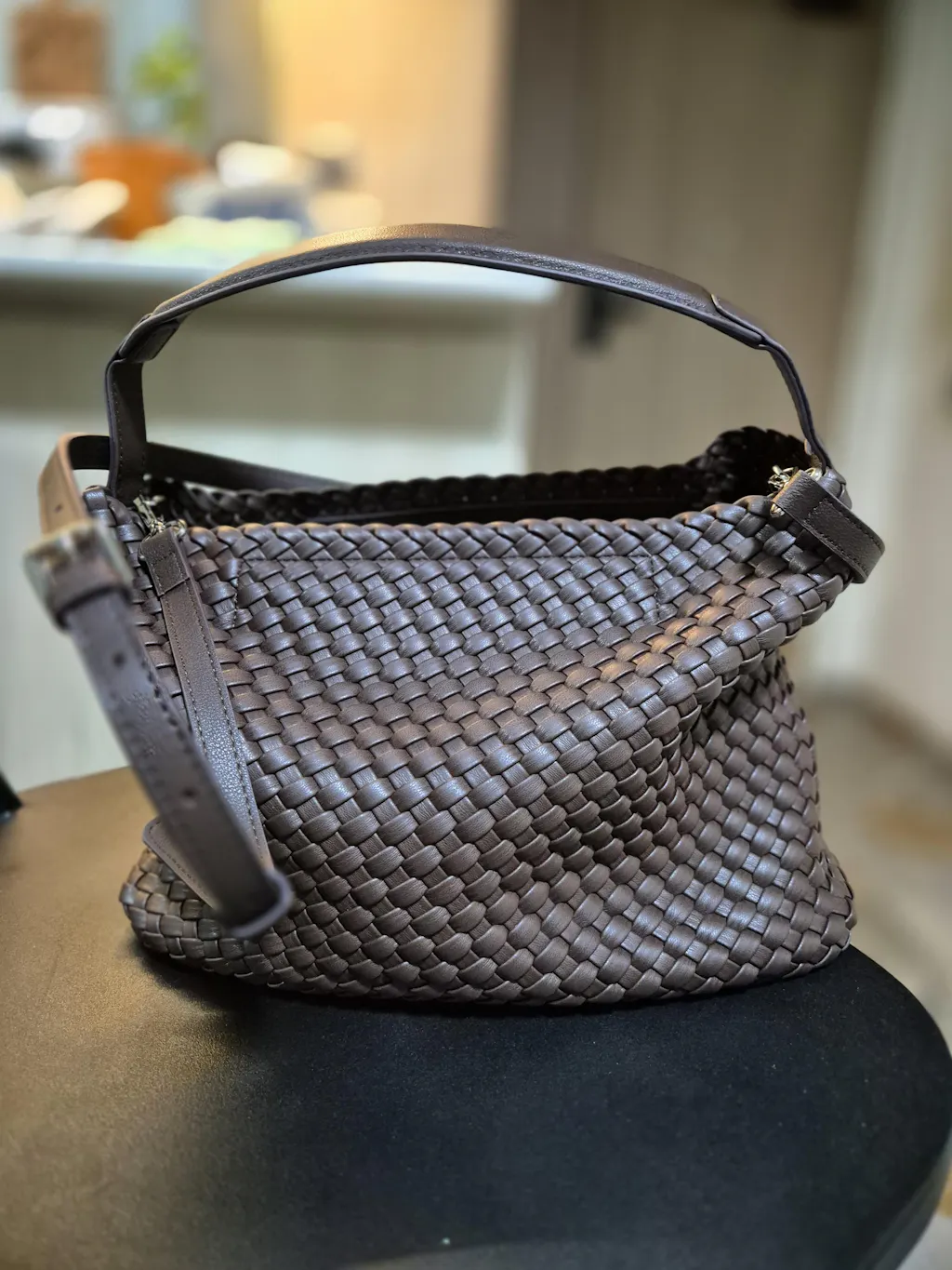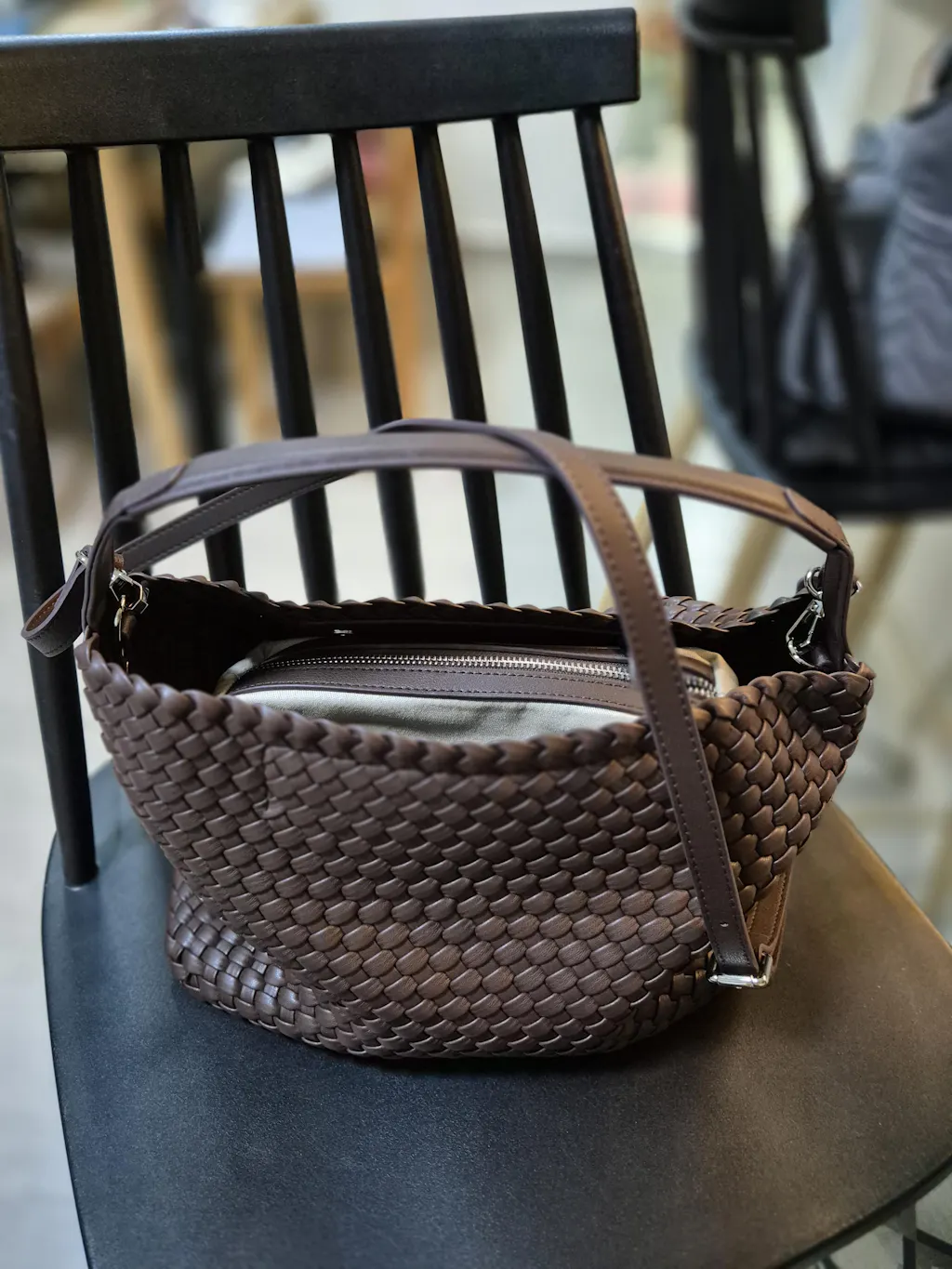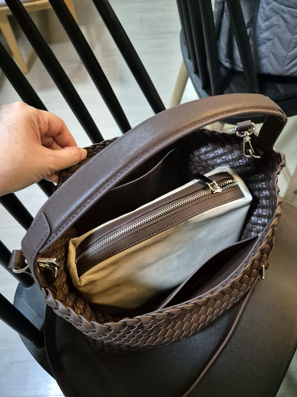 PAZZION, Xavia Bead Charmed Woven Bag, Darkbrown