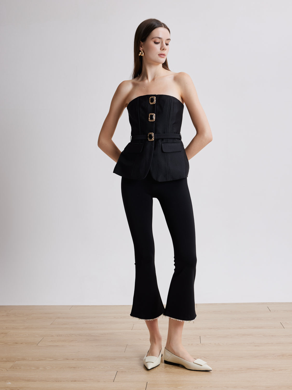 PRODUCT DESCRIPTION Elie redefines classic modernity with its sleek pointed toe and striking oversized sculpted buckle, crafted from smooth cowhide leather that exudes subtle confidence. Available in refined beige and timeless black, these flats are equipped with a thick padded insole and lambskin lining for unparalleled comfort and effortless grace...