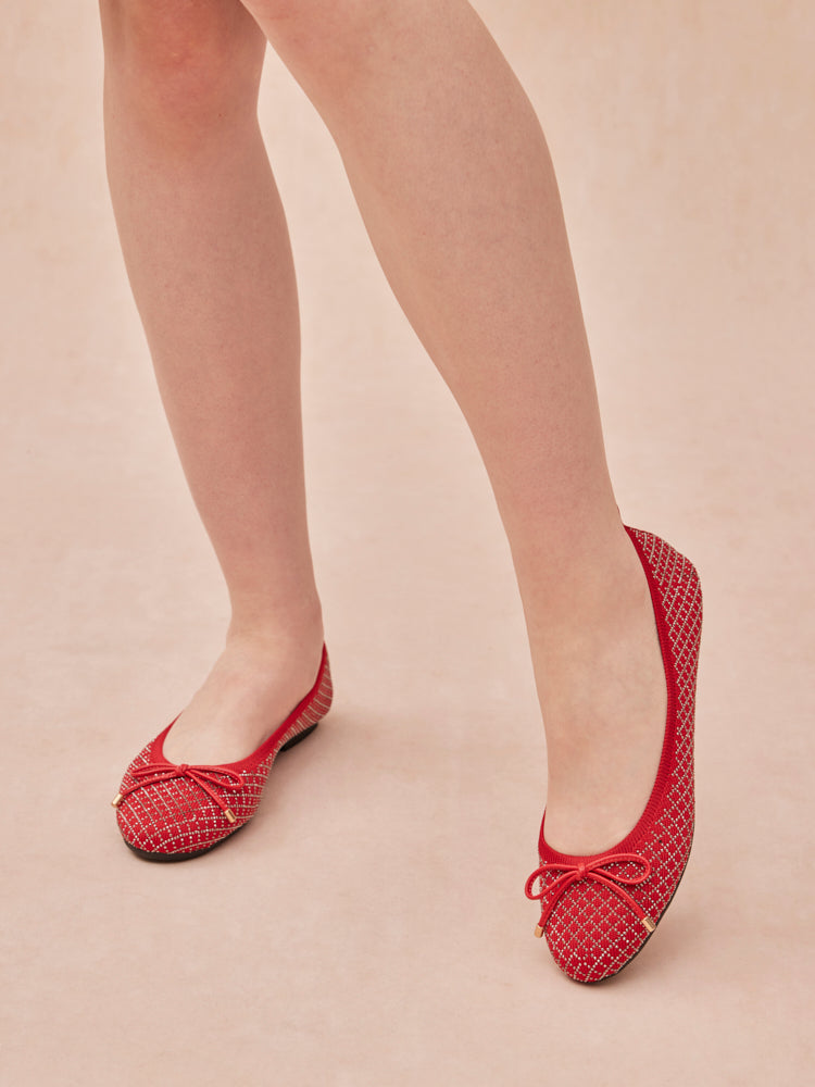 Comfort meets sparkle in the most stylish way with this pair of Brooke Crystal Grid Flyknit Flats. These flats are anything but ordinary, featuring a lightweight flyknit upper adorned with shimmering crystals arranged in a chic grid pattern. Every step you take will catch the light, thanks to the eye-catching design. The adorable bow detail adds a touch of sweetness, making these flats your go-to for adding a bit of glam to any outfit. Whether you're out for brunch or headed to a casual evening out, these flats will have you stepping out in style.