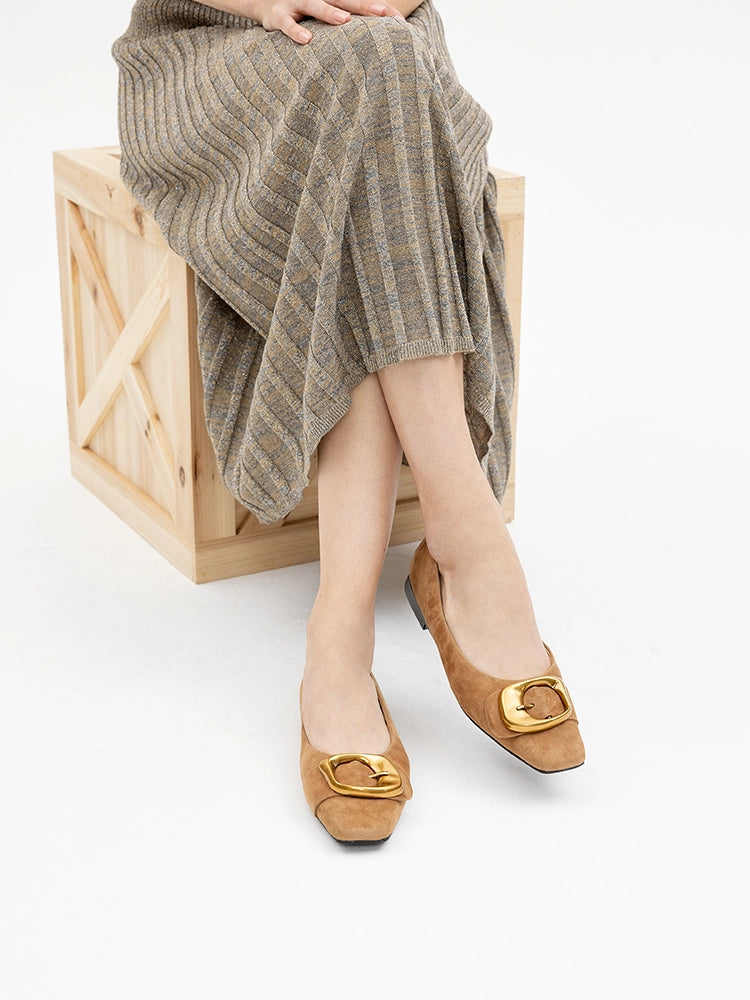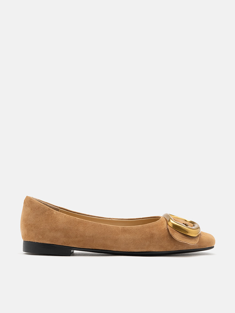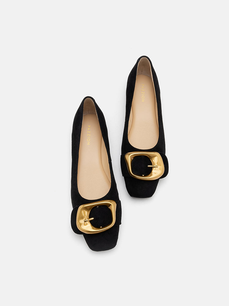 Bask in luxury with Lennox. These covered flats are crafted from soft and velvety lamb suede, showcasing an elegant touch with a gleaming gold buckle at the front. The exquisite combination of premium materials and refined detailing makes these flats a timeless statement and blend of style and comfort.
