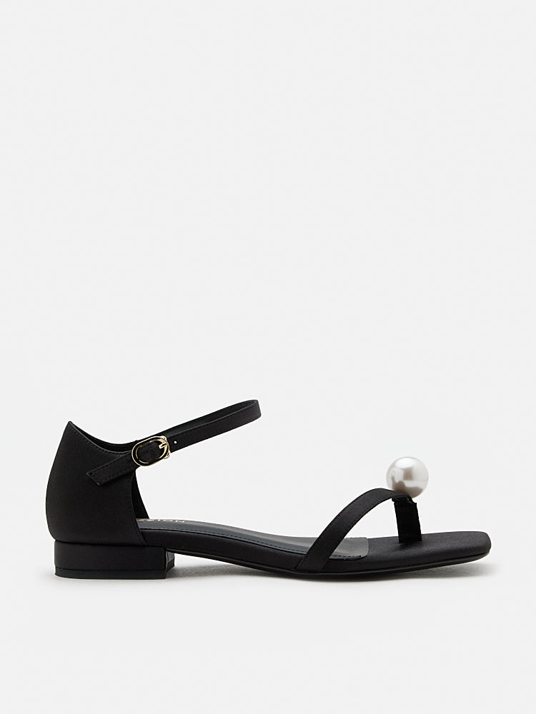 Indulge in the timeless charm of Kailyn, a delightful fusion of elegance and sophistication. The pièce de résistance of these sandals is the exquisite pearl gracefully perched atop the toe strap. A statement of refined taste and placed with precision, it adds a touch of opulence to the sandals, creating a subtle yet impactful focal point. Kailyn effortlessly blend classic beauty with contemporary design, making them a versatile choice for various occasions.