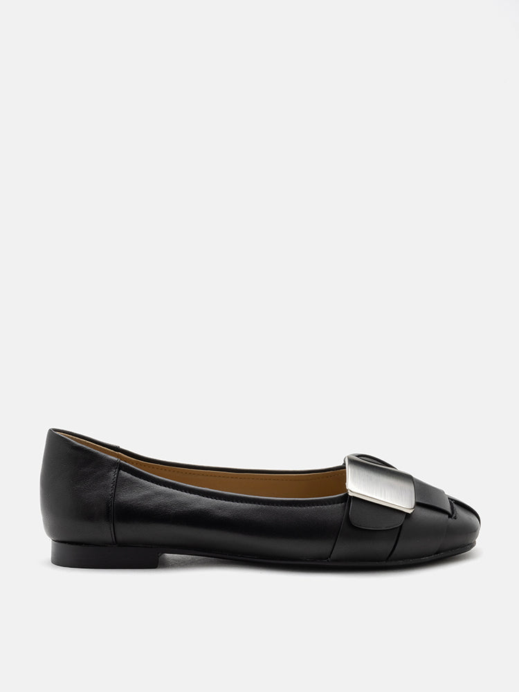 Elevate your footwear collection with Reese, where artistry and comfort seamlessly intertwine. The subtle yet captivating reflective mini buckle adds a touch of elegance, catching the light with every step. The soft, supple leather conforms to your foot, ensuring a snug and cozy fit. The intricately weaved pattern not only enhances the visual appeal but also provides breathability, making these flats suitable for all-day wear. Whether you're strolling through the city streets, pairing them with your favourite jeans or a flowing skirt, these exquisite weaved flats serve as a testament to your impeccable taste.