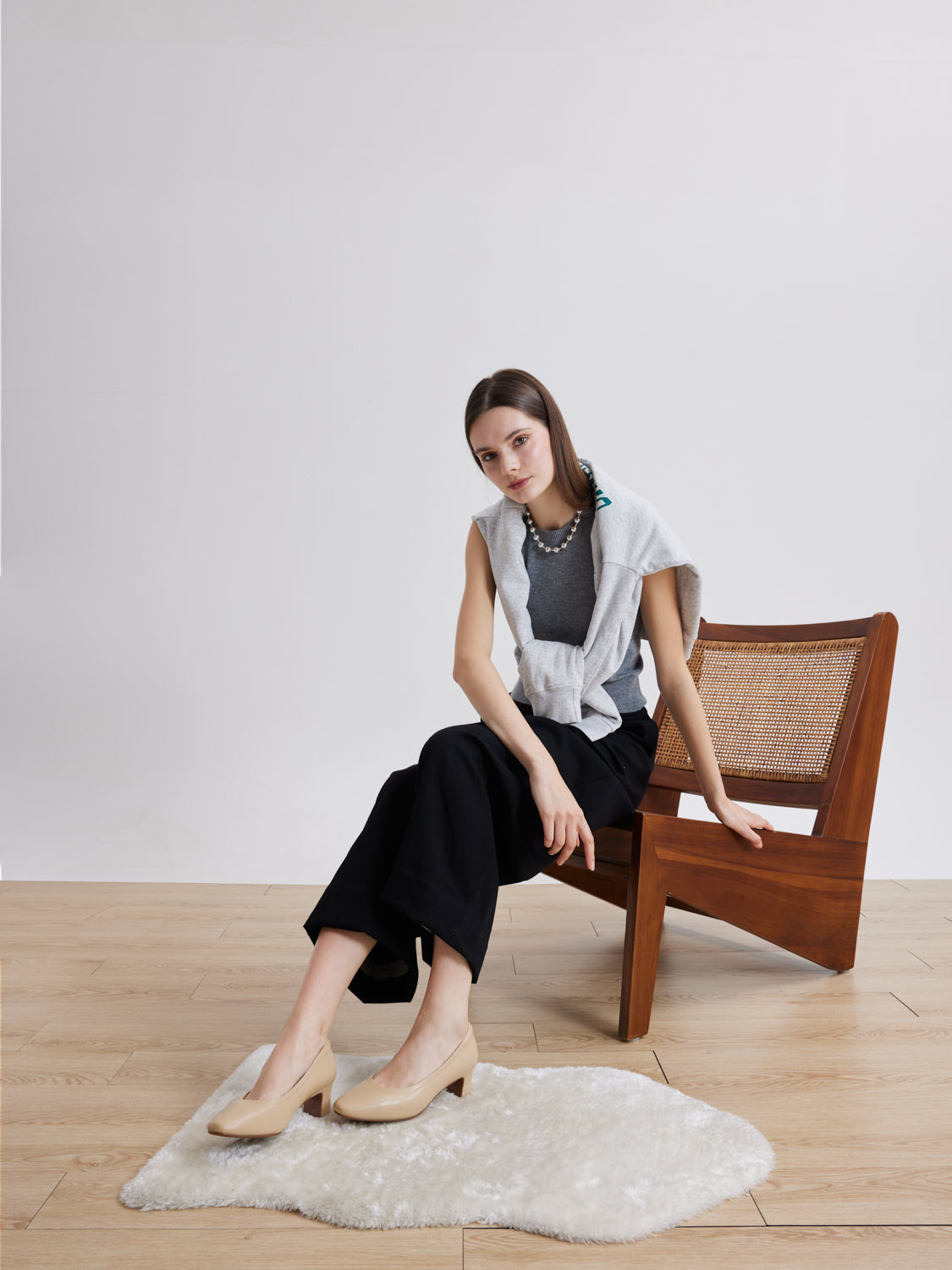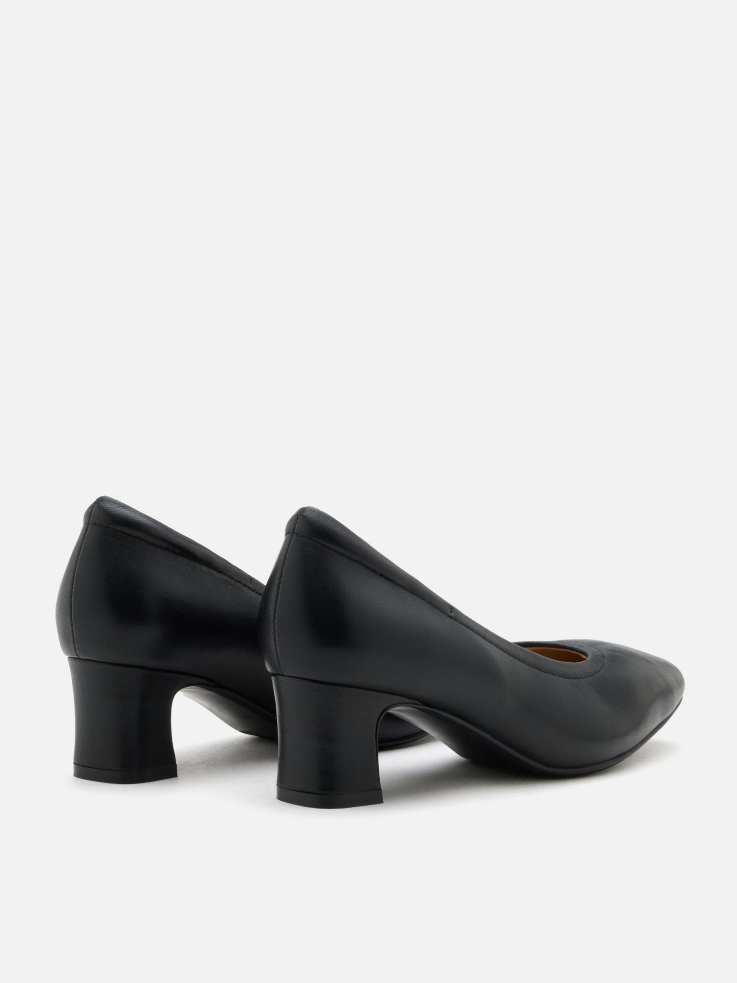 Blending classic minimalism with superior comfort, these low heels are crafted from supple lambskin leather with a graceful square toe silhouette. Designed for all-day ease, they feature a thick padded insole and pillow cushioning at the back, offering gentle support and a plush fit. The understated form and flawless craftsmanship make them an essential addition to any refined wardrobe, available in versatile almond and black hues.
