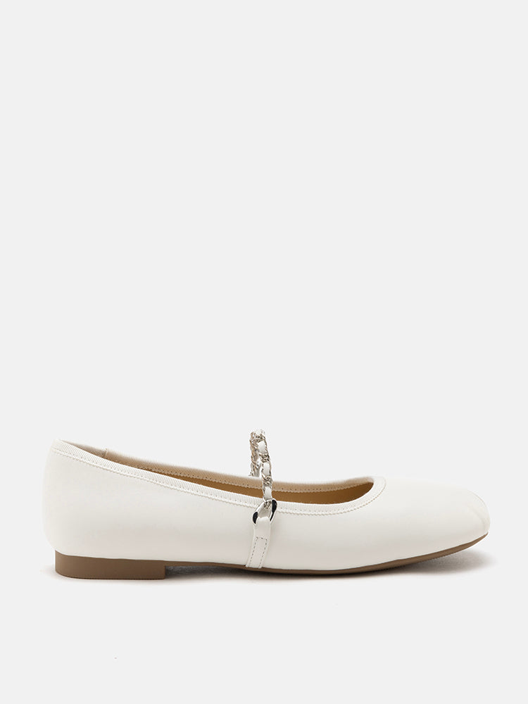 A harmonious blend of timeless allure, modern sophistication with a hint of boldness, Jessie is an embodiment of exquisite style. Adorned with a sleek and graceful chain hardware, these Mary Janes exude an air of refined charm with a blend of edginess, making each stride a bold fashion statement.