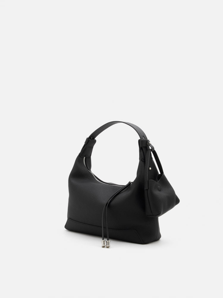 Effortlessly chic and supremely versatile, the Giovanna Slouchy Leather Shoulder Bag is your go-to companion for day-to-night style. Crafted from soft, supple leather, its relaxed silhouette exudes understated elegance, while silver accents add a touch of modern sophistication. Complete with a playful mini bag charm, this shoulder bag brings personality and practicality together.