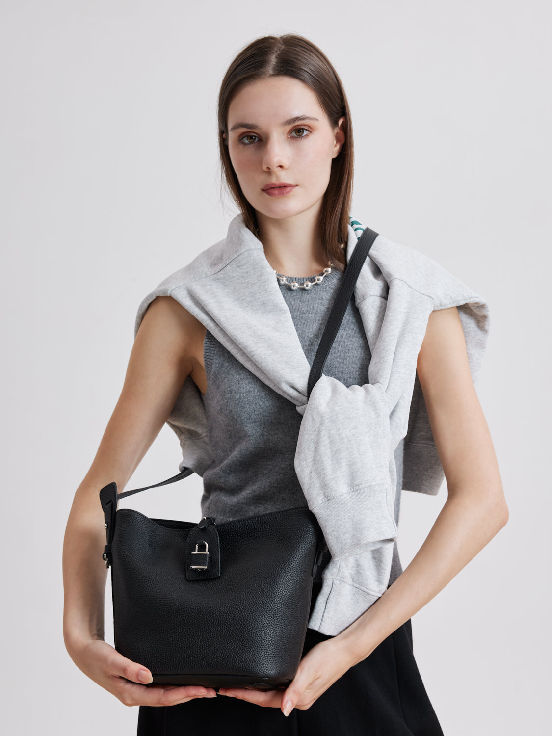 With a supple pebbled cowhide leather exterior and a soft fabric lining, Tate balances practicality with refined minimalism. Thoughtfully engineered for three-way versatility, its adjustable strap lets you transition effortlessly between hand-carry, shoulder tote, and crossbody wear. The subtle buckle accent at the front adds quiet luxury, making Tate a timeless companion that complements both casual and polished looks.